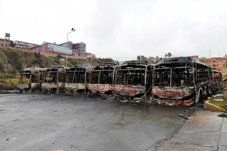 Añade que el informe del Grupo Interdisciplinario de Expertos Independientes (GIEI) observó “fragilidad en la acusación” de la Fiscalía de La Paz contra los presuntos responsables por la quema de 66 buses PumaKatari y no agotó la búsqueda de evidencias para identificar a los culpables del hecho que ocurrió entre el 10 y 11 de noviembre de 2019, después de la renuncia de Evo Morales a la Presidencia.