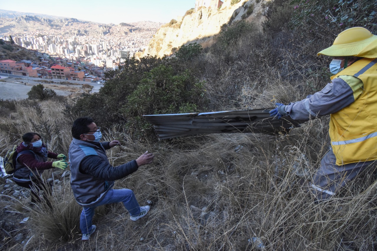 En coordinación con la subalcaldesa de Periférica, Evelin Gonzales, cerca de 100 funcionarios municipales de diferentes reparticiones levantaron las calaminas para “sentar soberanía municipal”, con el colocado de letreros de propiedad municipal. El sector intervenido está ubicado debajo de la Av. Periférica, a pocos pasos de una de las estaciones de la Línea Naranja del Teleférico.