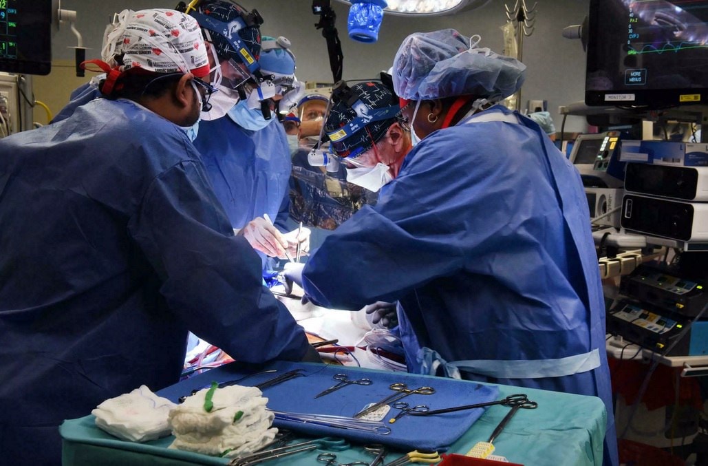 Un equipo de cirujanos estadounidenses trasplantó con éxito el corazón de un cerdo modificado genéticamente a un humano; una primicia mundial, informó el lunes la universidad Maryland Medical School.