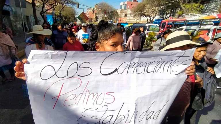 Miles de comerciantes tomaron las calles del centro de la ciudad de Cochabamba en una masiva protesta para denunciar la escasez de dólares en el país, situación que, según afirman, ha provocado un aumento significativo en los precios de los productos. «No podemos seguir así, cada día todo es más caro y no hay dólares para abastecernos», expresó uno de los manifestantes.